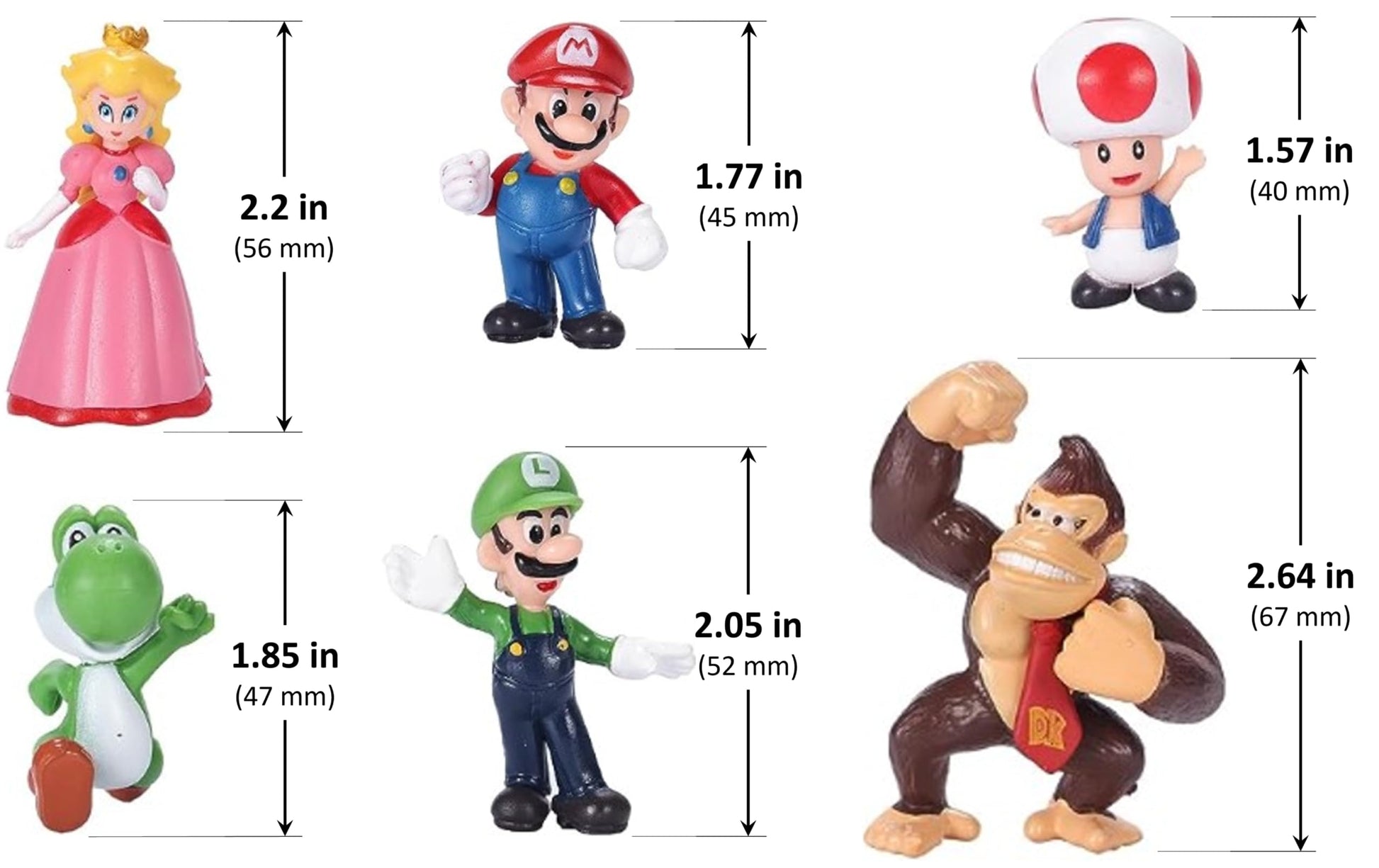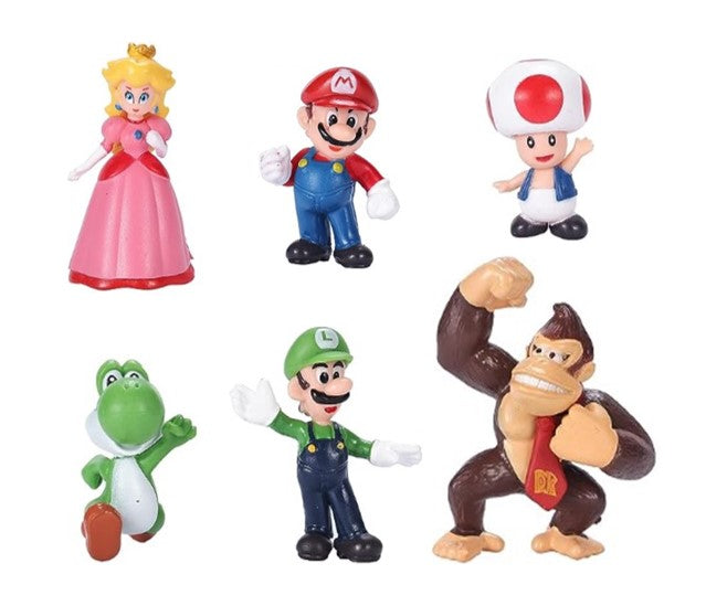 6 Piece Mario Action Figure Play Set and/or Cake Topper
